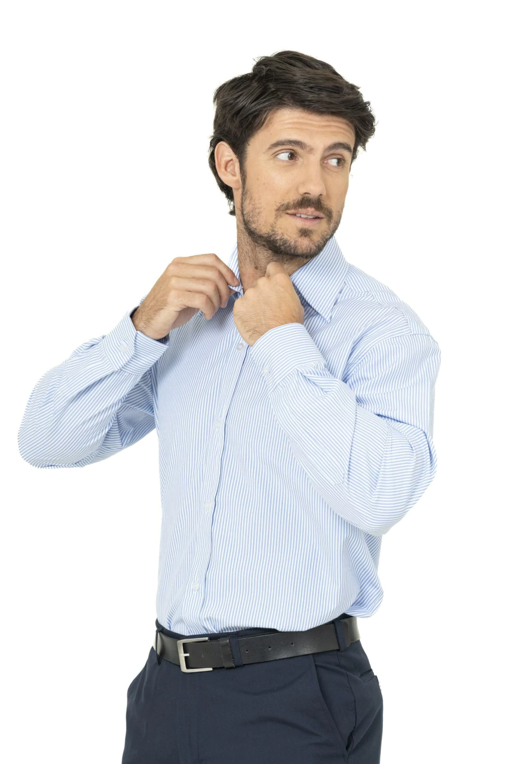 Camisa clásica semi entallada, manga larga con presilla para arremangar.