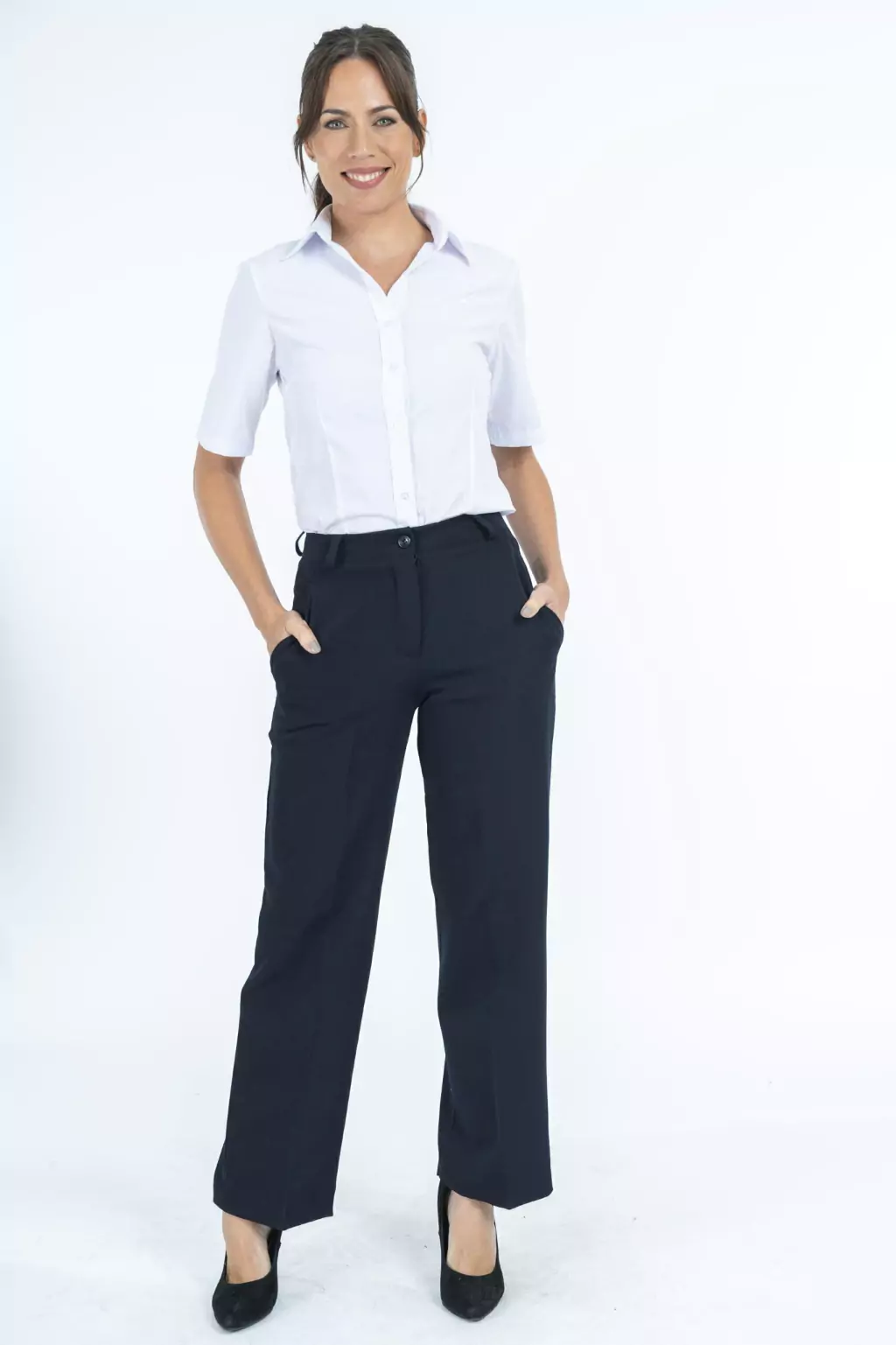 Pantalón azul para uniforme administrarivo tiro medio alto recto con bolsillos laterales.